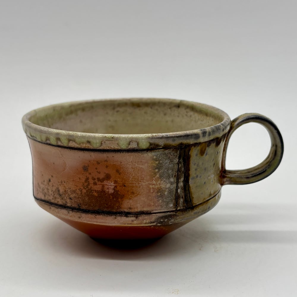 This 5oz espresso cup is made out of a porcelain and white stoneware blend. It is inlayed with iron oxide and aside from its naturally produced glaze, it has durable white liner glaze. It was fired for 2 days in a Catenary Arch kiln in Oregon and soda was added.