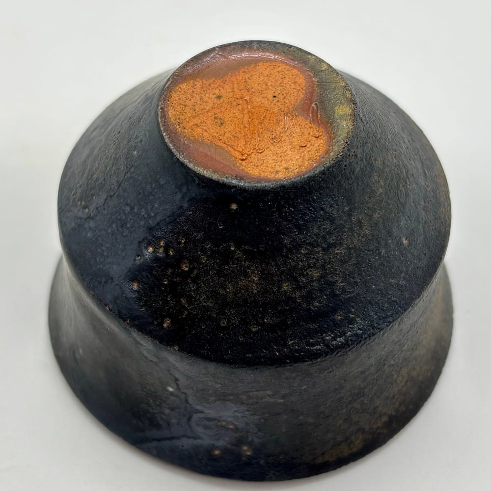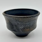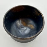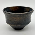 This 3oz cup is made from stoneware and coated with a dark clay body slip. It was fired in a gas kiln and soda was added.